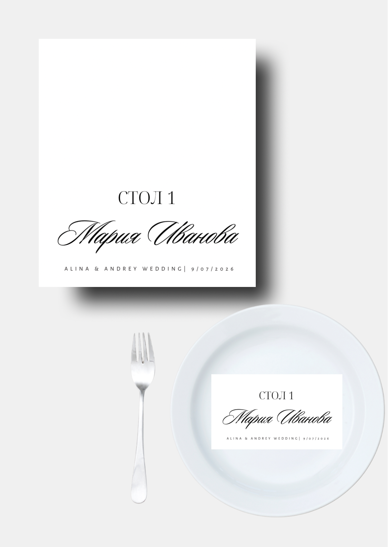 Каждая карточка может быть выполнена в одностороннем или двустороннем формате. Вся информация в шаблоне адаптируется под вашу свадьбу. Остальная свадебная полиграфия может быть оформлена в едином стиле для создания целостного и гармоничного образа торжества